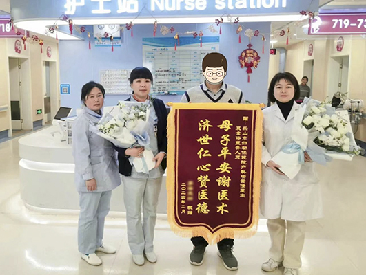 6點17分,產(chǎn)房里傳來嬰兒響亮的啼哭聲,吳女士平安產(chǎn)下一名男嬰。等待在產(chǎn)房外的吳女士愛人得知母子平安時,喜極而泣。為感謝喻云倩及產(chǎn)科醫(yī)護人員的辛勞付出和精心呵護,吳女士愛人送上寫有“母子平安謝醫(yī)術(shù) 濟世仁心贊醫(yī)德”的錦旗,表達一家人的感激之情。
