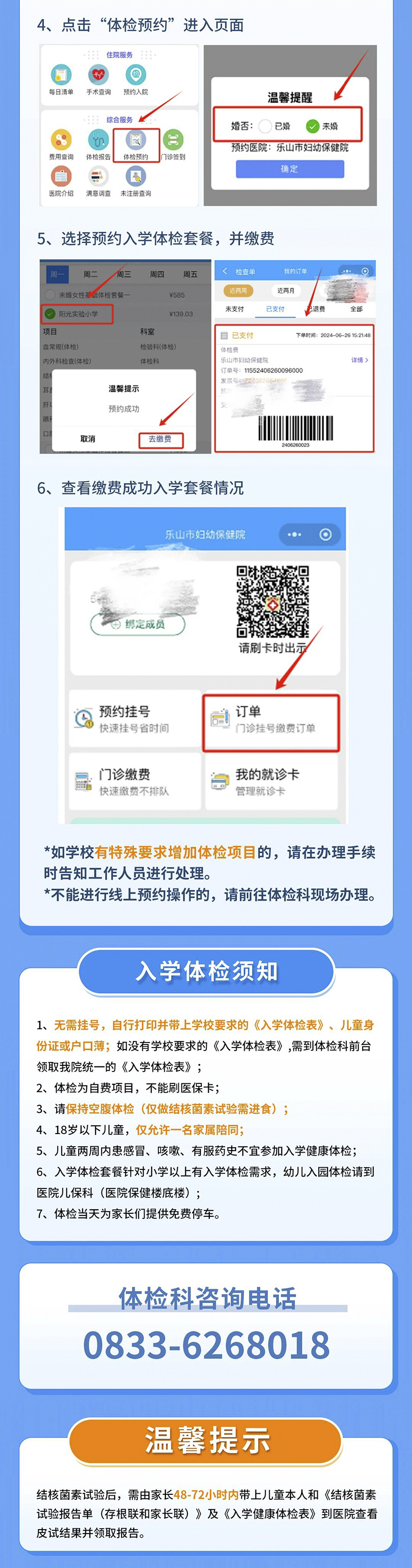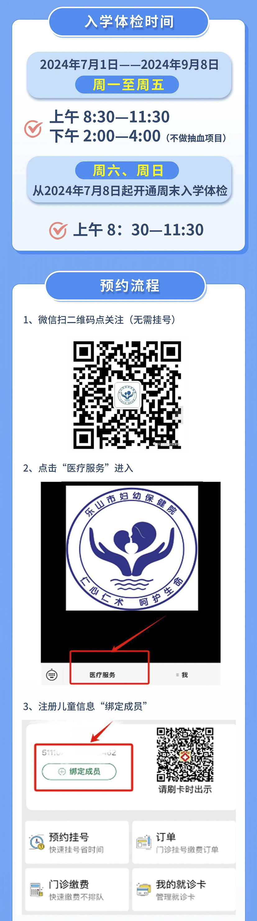 【“醫(yī)”心“醫(yī)”意】樂山市婦幼保健院(三級甲等)小學以上入學體檢指南