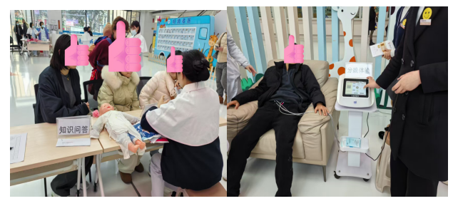 活動(dòng)創(chuàng)新設(shè)置了多個(gè)互動(dòng)環(huán)節(jié),將知識(shí)科普與趣味體驗(yàn)深度融合。“分娩疼痛體驗(yàn)”吸引眾多準(zhǔn)爸爸踴躍嘗試,通過(guò)模擬分娩陣痛,讓家屬切身感受母親的不易,現(xiàn)場(chǎng)笑聲與驚嘆交織,溫情滿滿;“孕產(chǎn)知識(shí)問(wèn)答”通過(guò)有獎(jiǎng)競(jìng)答普及優(yōu)生優(yōu)育知識(shí),參與者紛紛表示“既長(zhǎng)知識(shí)又贏禮品,收獲感十足”。此外,“打卡拍照區(qū)”以孕期獨(dú)特的打卡墻布景成為人氣焦點(diǎn),孕媽們?cè)诖硕ǜ裥腋K查g,記錄孕期獨(dú)特的美。