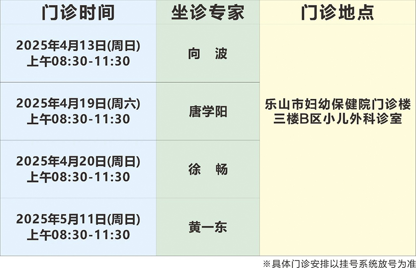 現(xiàn)在,華西小兒外科專家團隊已入駐樂山市婦幼保健院!每周末,華西小兒外科專家輪流坐診,家長們再也不用擔心來回奔波,小朋友們也可以不出樂山就能享受到華西頂尖專家的診療服務。