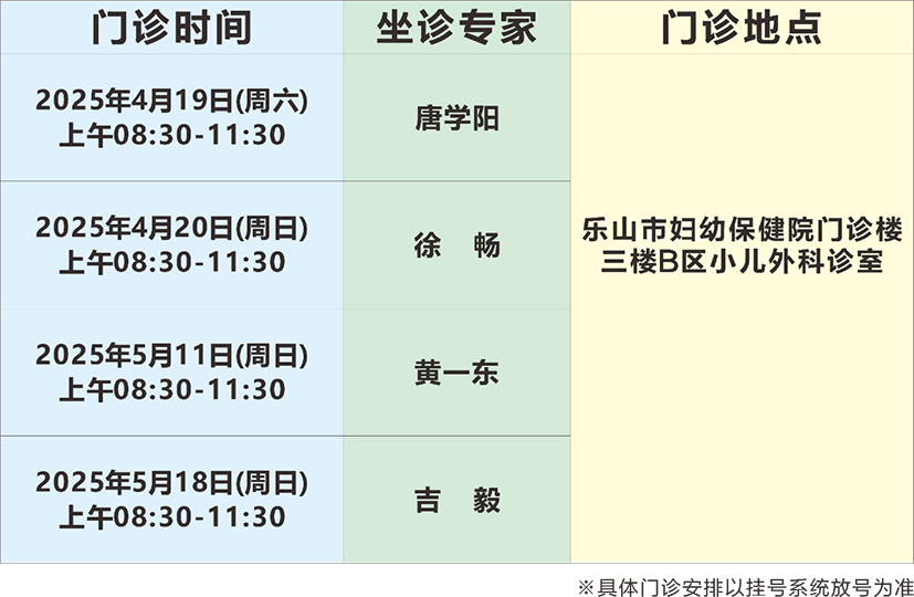 現(xiàn)在,華西小兒外科專家團隊已入駐樂山市婦幼保健院!每周末,華西小兒外科專家輪流坐診,家長們再也不用擔心來回奔波,小朋友們也可以不出樂山就能享受到華西頂尖專家的診療服務。