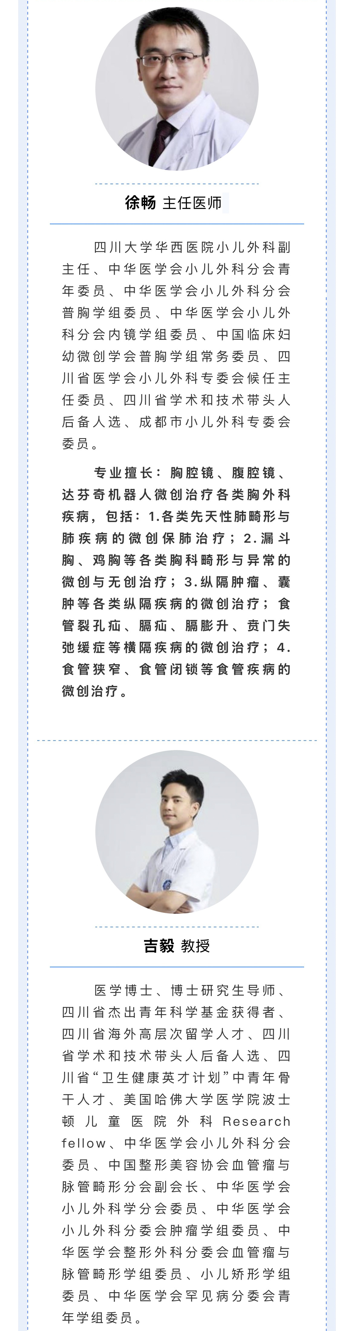 專業(yè)擅長:小兒微創(chuàng)外科及普外科相關疾病診治,主要涉及胃腸道、肝膽系統(tǒng)發(fā)育畸形及腹腔內良惡性腫瘤,擅長小兒先天性巨結腸、膽總管囊腫、脾臟疾病等微創(chuàng)(腔鏡)手術。
