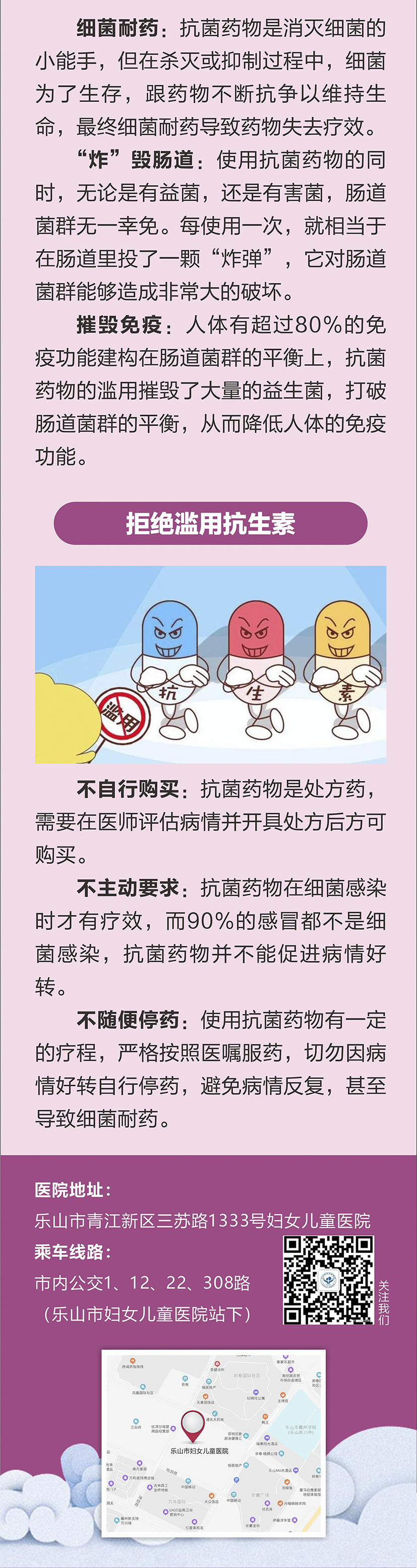 醫(yī)院地址:樂山市青江新區(qū)三蘇路1333號和瑞晗路1199號 乘車路線:市內(nèi)公交車1路、12路、22路、308路(樂山市婦女兒童醫(yī)院站下車)