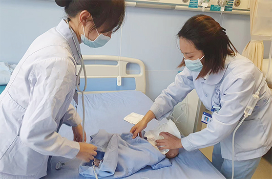 產(chǎn)科一區(qū)模擬715床家屬懷抱新生兒呼救:“老師,我的娃兒喂奶后嗆奶,現(xiàn)在沒有反應了”。值班護士意識到是新生兒嗆奶引起窒息,隨即一邊行“海姆立克” 急救法, 一邊大聲向值班醫(yī)師呼救,同時將新生兒抱至搶救室。值班人員迅速到位,通過吸痰、正壓通氣、胸外心臟按壓、心電監(jiān)護等一系列搶救措施,新生兒轉(zhuǎn)危為安,轉(zhuǎn)至新生兒科病房觀察治療。